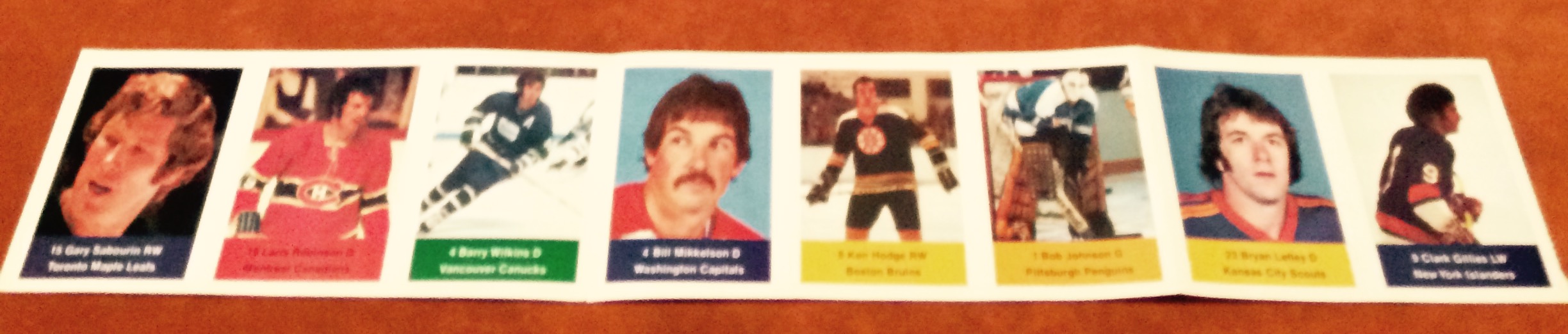 The Key Sticker for Panel 30 is Gary Sabourin. These panels were not really numbered, they are mostly indentified by the first sticker on the panel. This panel simply has 8 stamps/stickers attached together (as seen in the scan). This panel is neatly factory folded in 3.