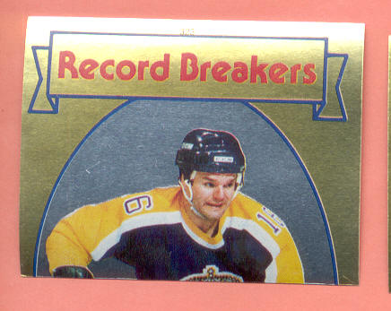 NHL Record. First NHL Player to score 100 plus points for 7 seasons in a row. French and English writing on this O-Pee-Chee sticker