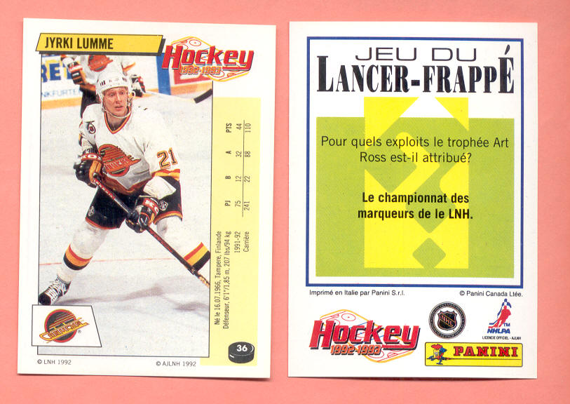 1992 PANINI French #36-Jyrki Lumme
