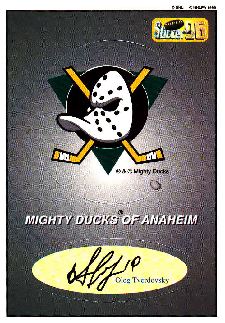 Tverdovsky not actually pictured on this sticker but his facsimilie autograph is the highlight of this card.