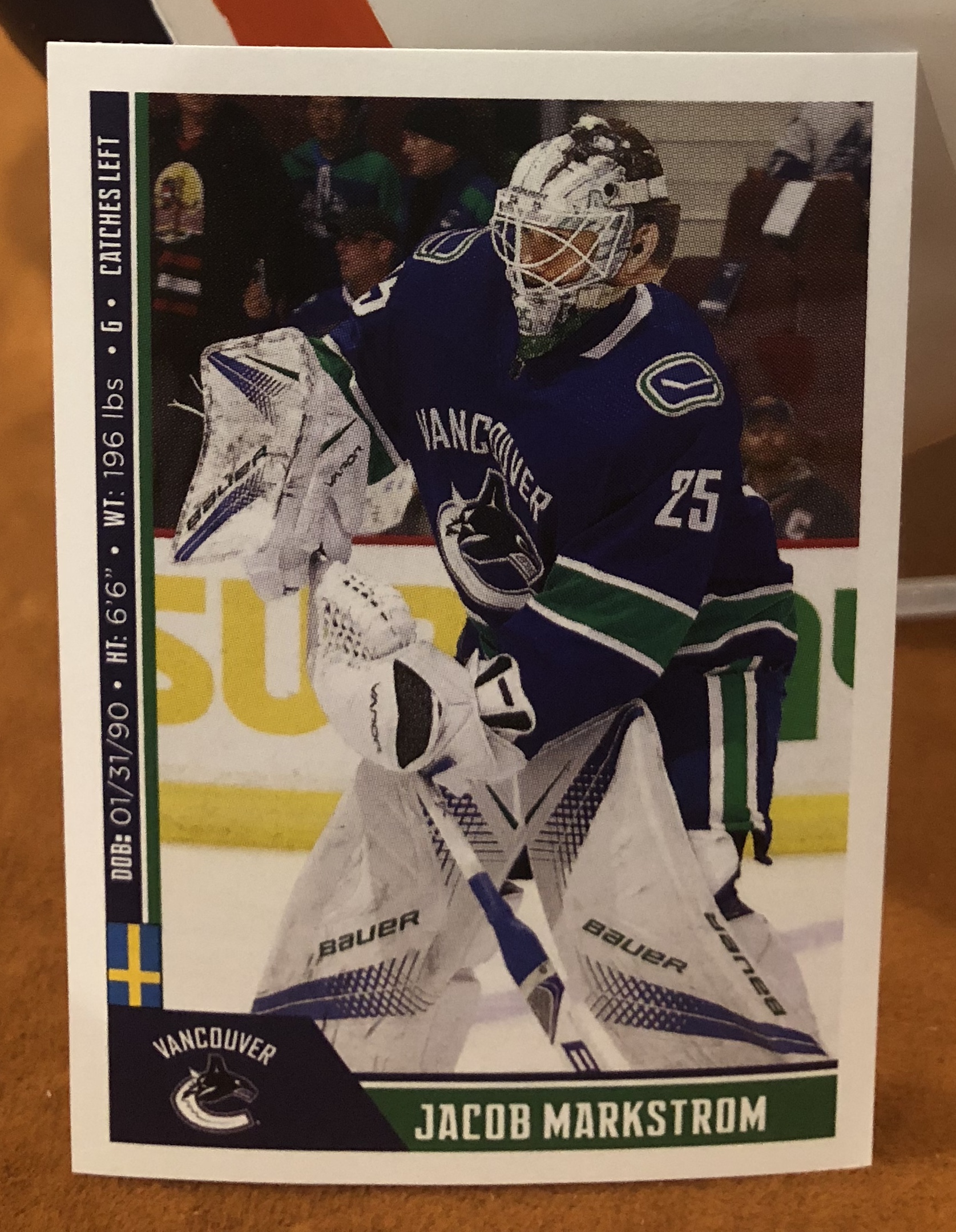 This sticker measures 4.9 X 6.9 cm (1.9 X 2.75 inches) which emulates the early 80’s classic size of sticker. This sticker is part of a massive five hundred and seventy five PANINI sticker set of NHL Hockey Stickers. There are also a large number of 141 Special Print Foils to chase in this set. It takes about 7-8 boxes on average to pull at least one of each sticker number in this set.