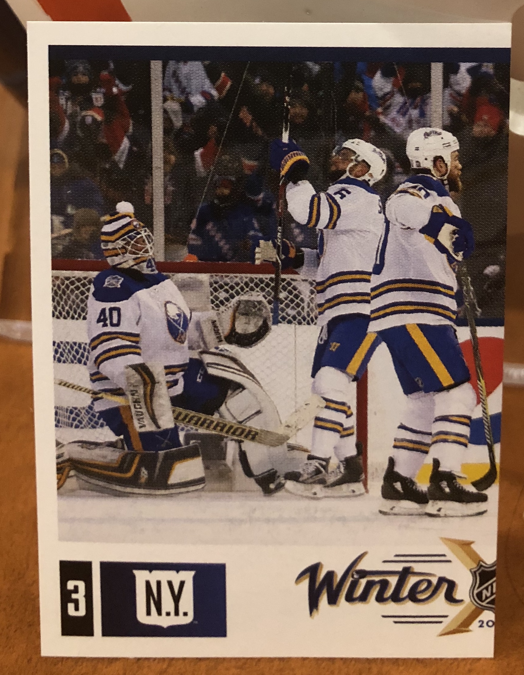 This sticker measures 4.9 X 6.9 cm (1.9 X 2.75 inches) which emulates the early 80’s classic size of sticker. This sticker is part of a massive five hundred and seventy five PANINI sticker set of NHL Hockey Stickers. There are also a large number of 141 Special Print Foils to chase in this set. It takes about 7-8 boxes on average to pull at least one of each sticker number in this set.