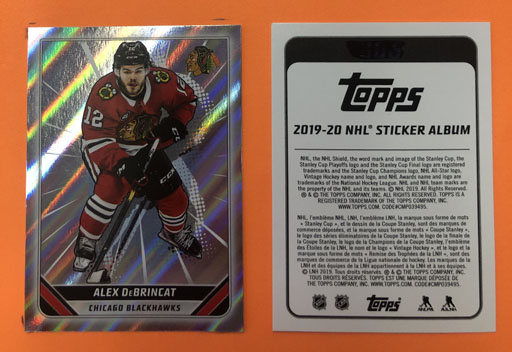 This sticker measures 5.3 X 7.3 cm (2.25 X 2.88 inches) which is a touch bigger than the early 80’s classic size of sticker. This sticker is part of a massive six hundred and thirty TOPPS sticker set of NHL Hockey Stickers. There are also a large number of 143 Special Print Foils to chase in this set. It takes about 7-8 boxes on average to pull at least one of each sticker number in this set.