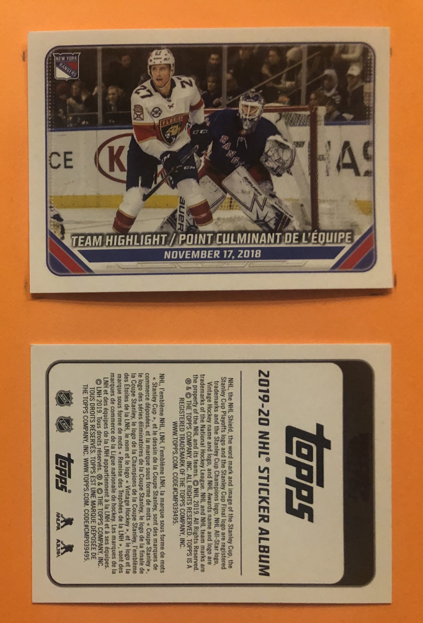 Categories: 2019, NHL Hockey Stickers (By Brand), Sticker Singles, Topps