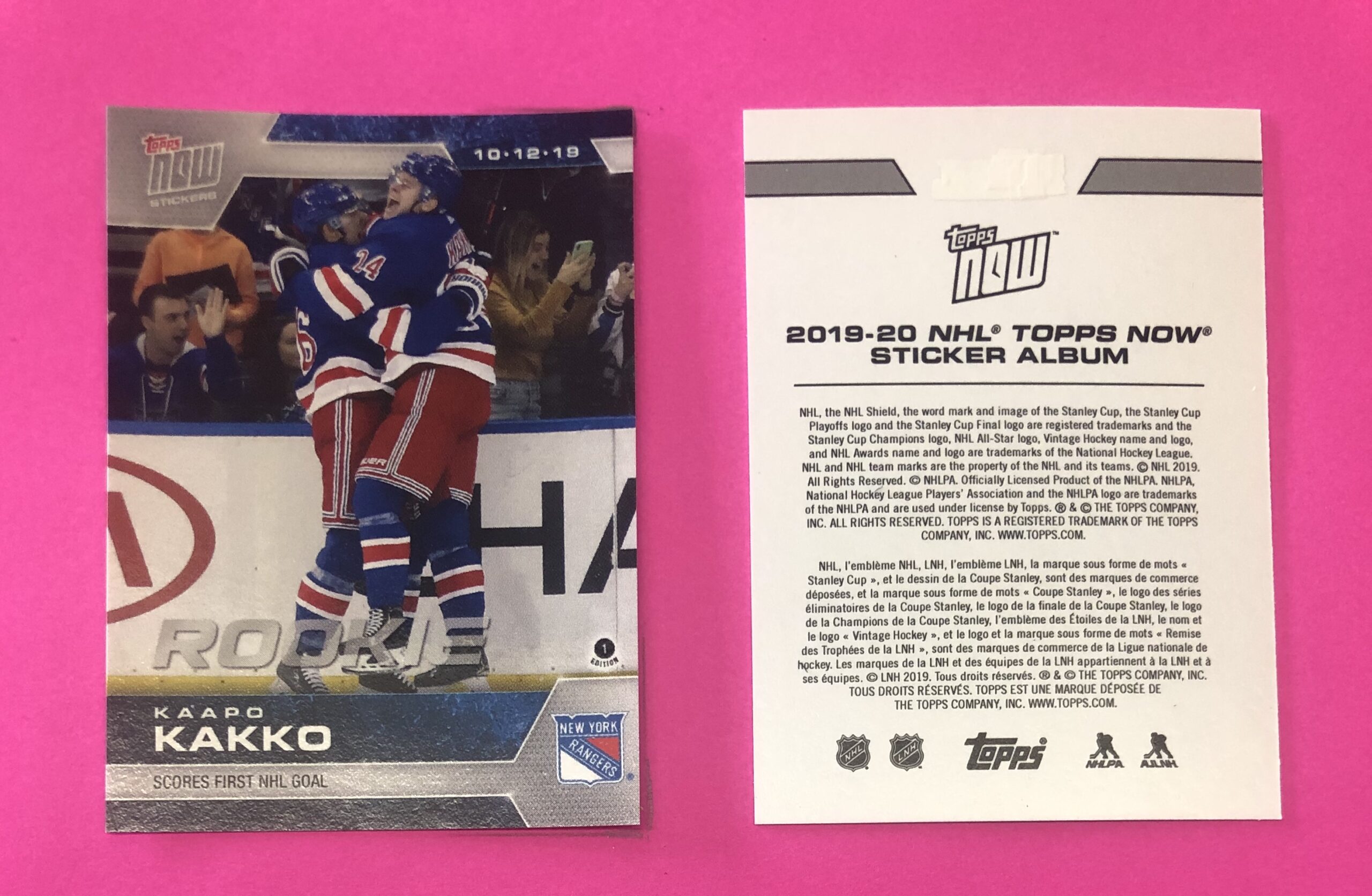 This sticker measures 5.3 X 7.3 cm (2.25 X 2.88 inches) which is a touch bigger than the early 80’s classic size of sticker. This sticker is part of a two hundred and seventeen TOPPS NOW sticker set of NHL Hockey Stickers. There were also 23 GOLD Special Print (which are NOT included in the album sticker set) sticker INSERTS to chase in this set. This was the FIRST time that the NHL had a “NOW” set made of their league in sticker form. A “NOW” set featured action that had “just” happened, and then shortly after Topps did a print run and sold them to the public. Each sticker had a defined “print run” as found on the topps.com “archive” section and in the title of this sticker for sale as well.