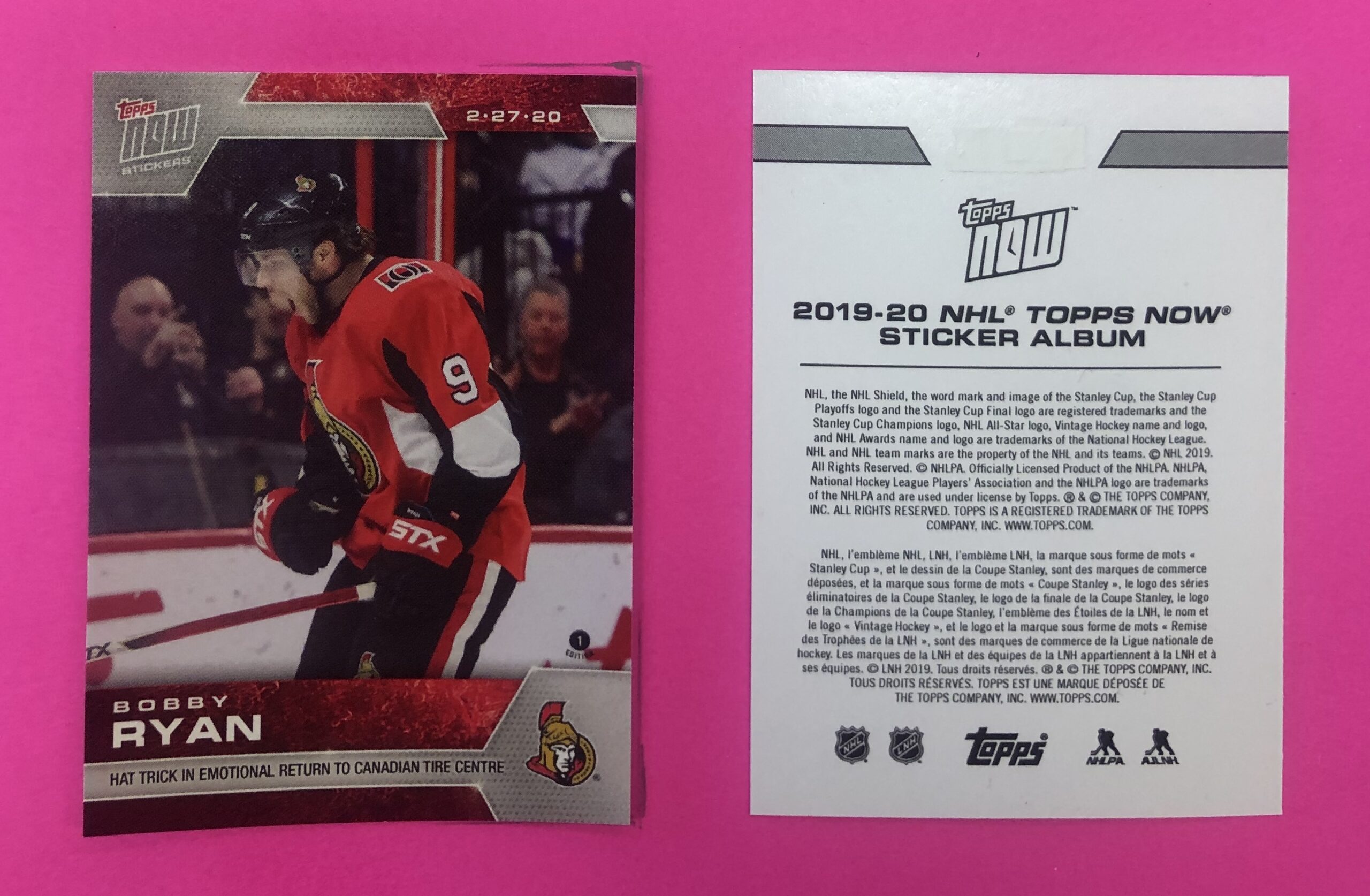 2019 Topps NOW Week 22- #192- Bobby Ryan (1 of 604)