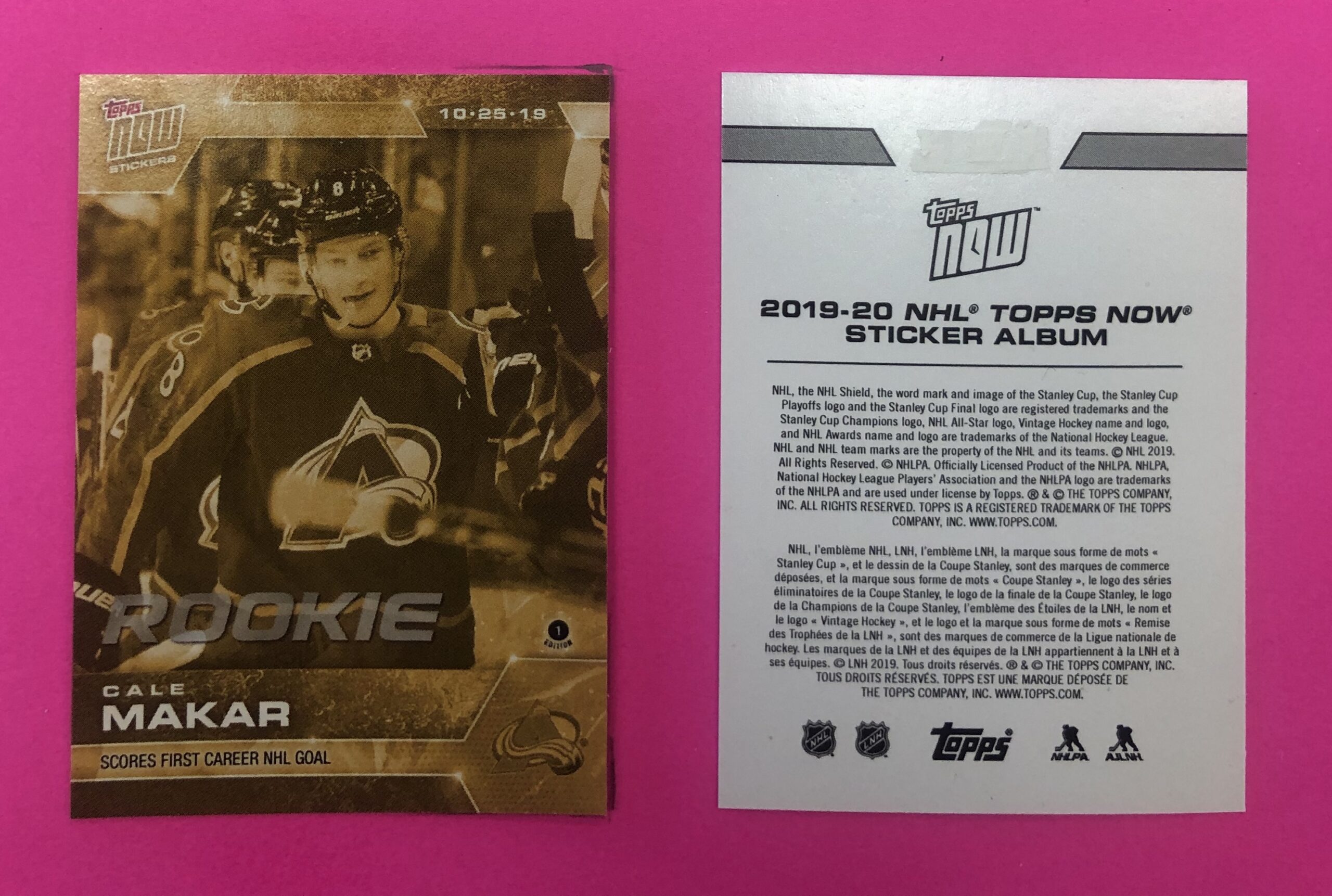 2019 Topps NOW Week 4- GOLD CHASE #31G- Cale Makar (1 of 77)