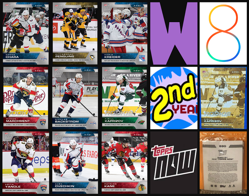 2020-21 TOPPS NOW Week 8 (Chara Top) Sticker Sealed Cellophane & Kaprizov GOLD on back Package 64-72 (1 of 36)