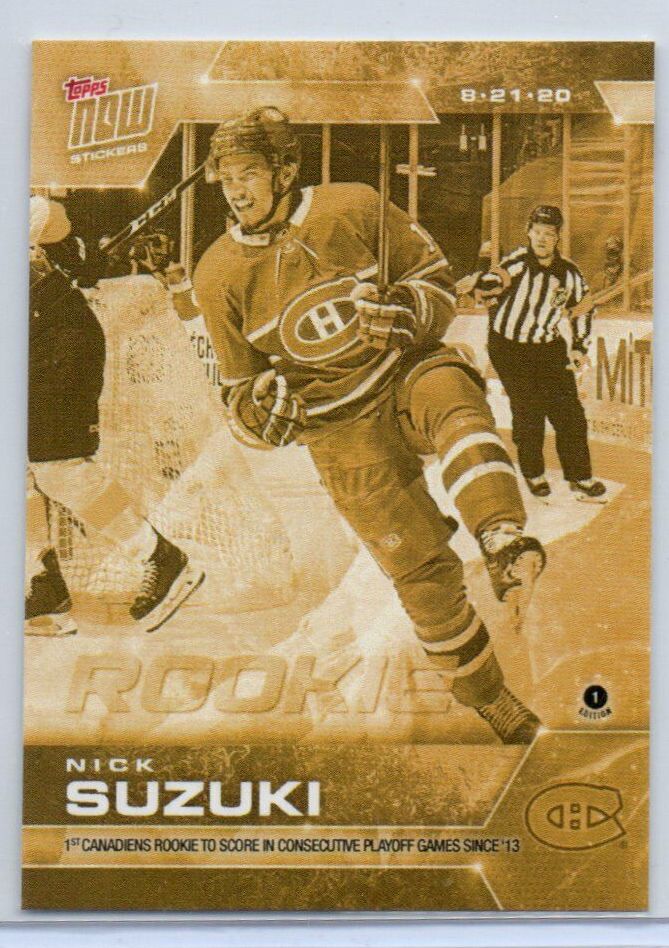 2020 PLAYOFFS TOPPS NOW Day 15 #SCP-93G Gold (back of pack proof) – Nick Suzuki est (1 of 8)