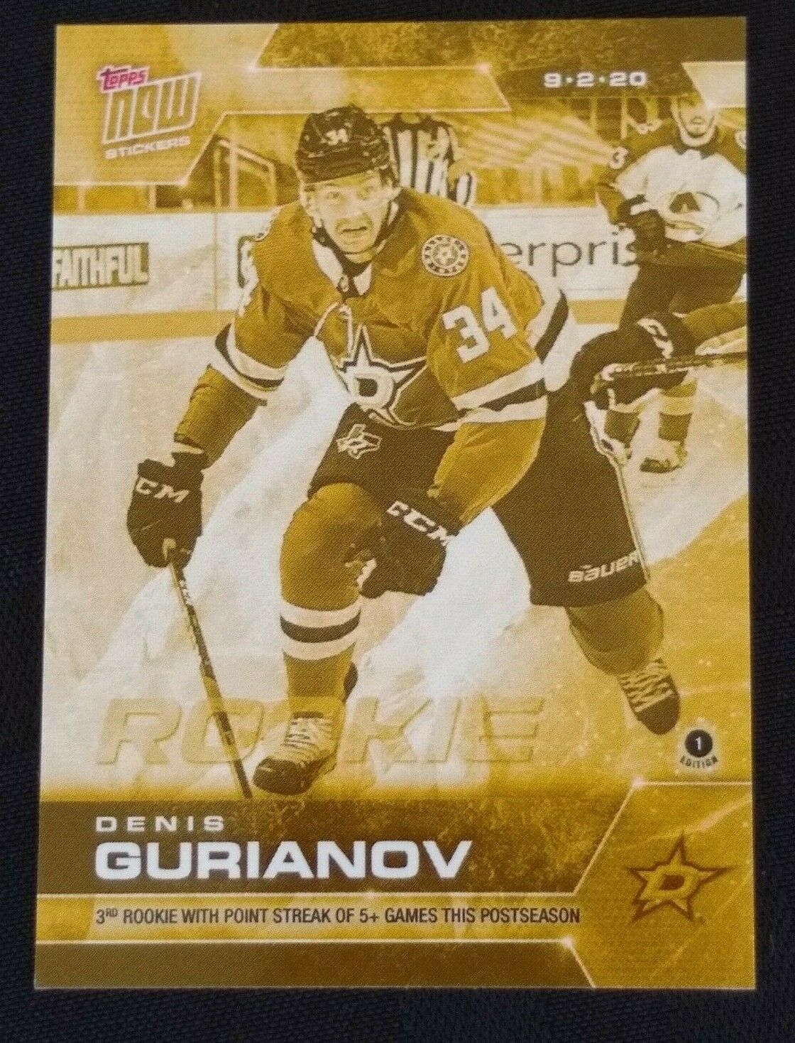 2020 PLAYOFFS TOPPS NOW Day 22 #SCP-138G Gold (back of pack proof) – Denis Gurianov 3 est (1 of 4)