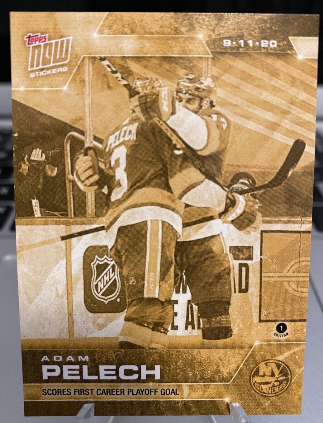 2020 PLAYOFFS TOPPS NOW Day 28 #SCP-167G Gold (back of pack proof) – Adam Pelech est (1 of 4)