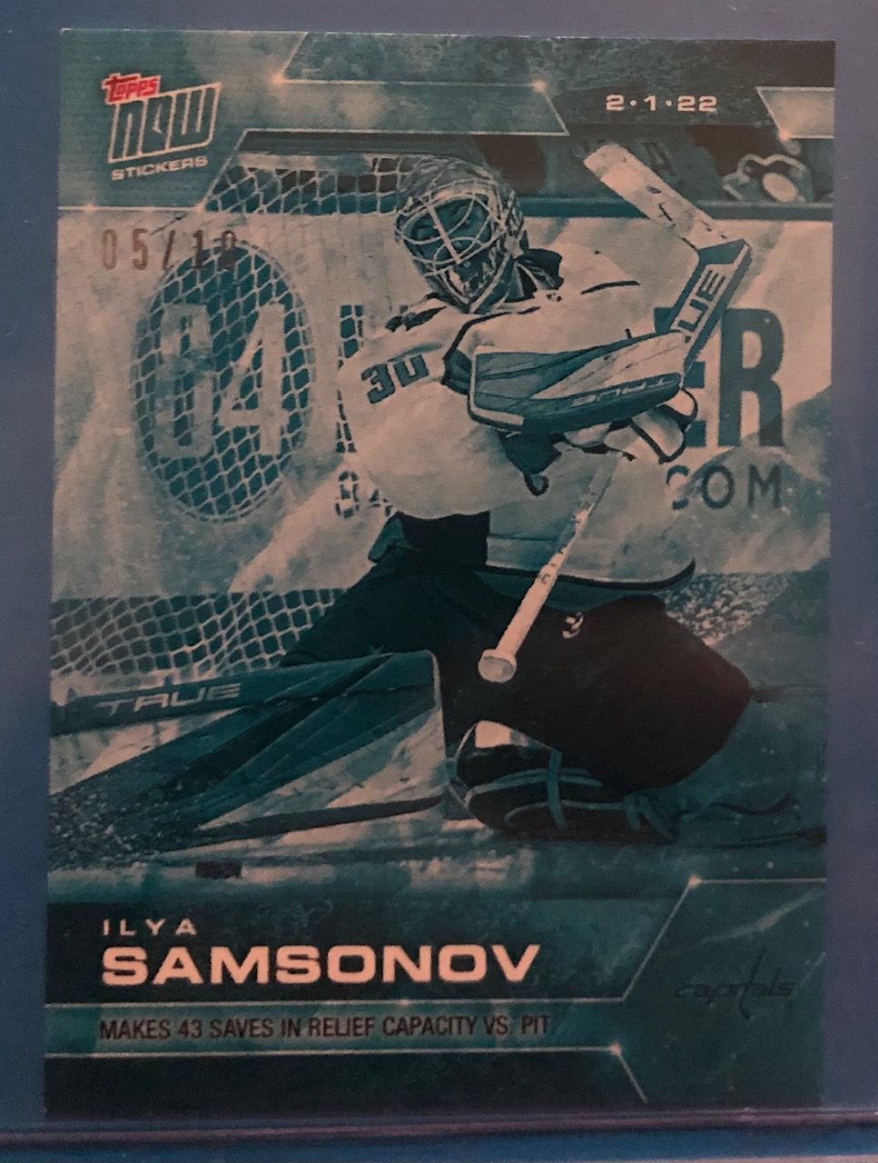 Makes 43 Saves in Relief Capacity vs PIT. (2.1.22) from February 1, 2022. Capitals #5/10 is the sticker you will receive.