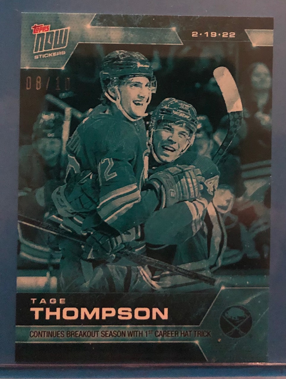 Continues Breakout Season With 1st Career Hat Trick. (2.19.22) from February 19, 2022. Sabres First Year Player #8/10 is the sticker you will receive.