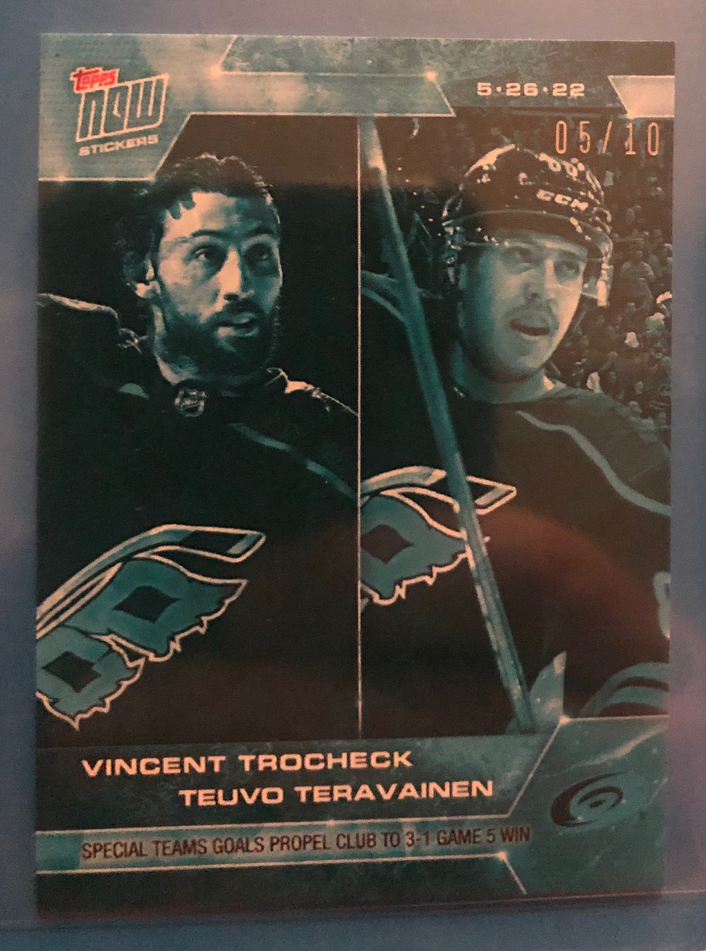 Special Teams Goals Propel Club to 3-1 Game 5 Win. (5.26.22) from May 26, 2022. Hurricanes #5/10 is the sticker you will receive.
